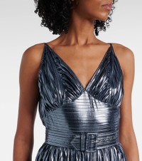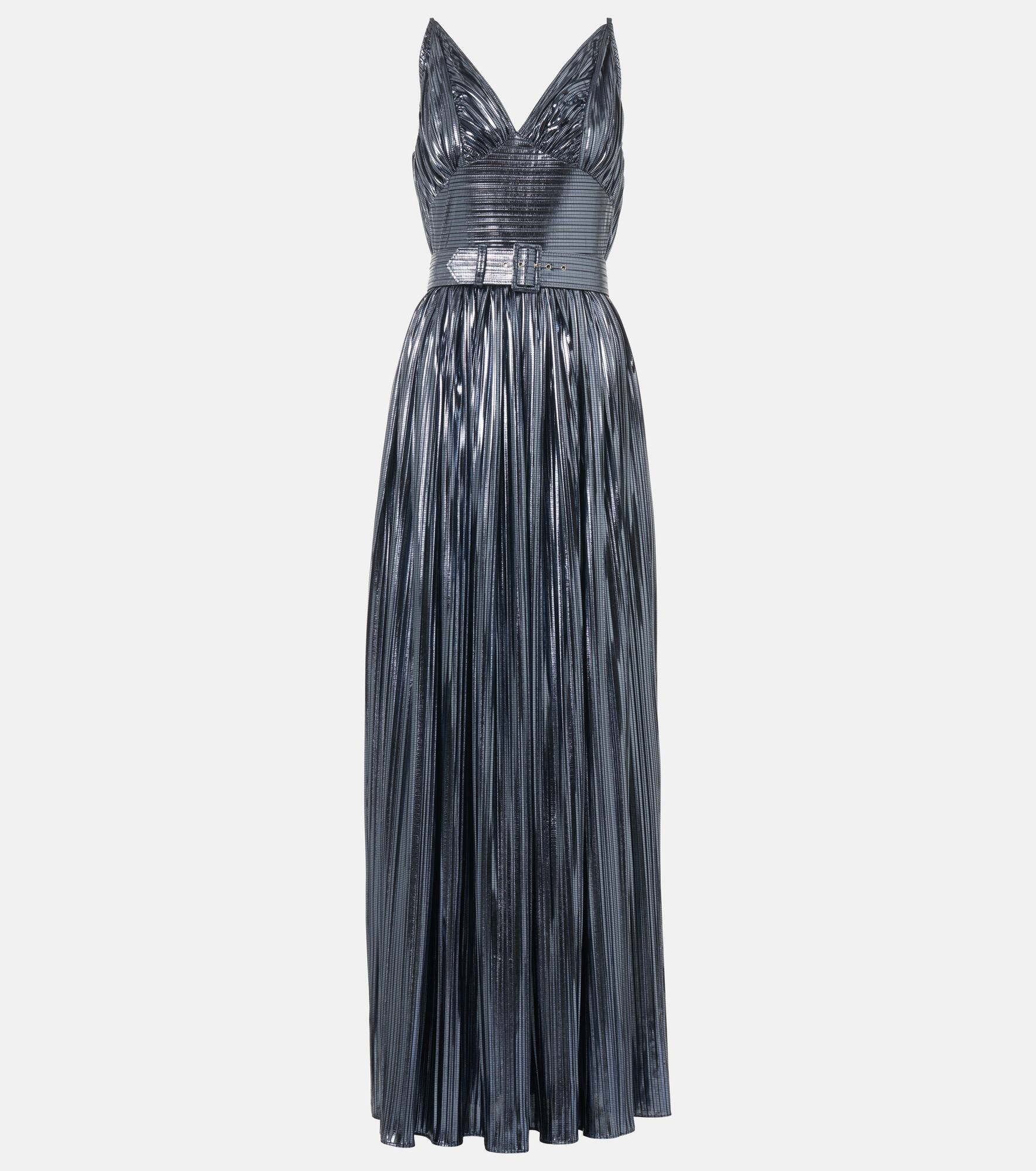 Pleated belted lamé gown
