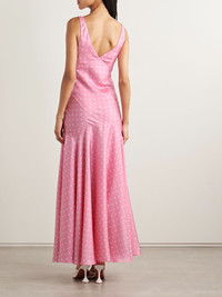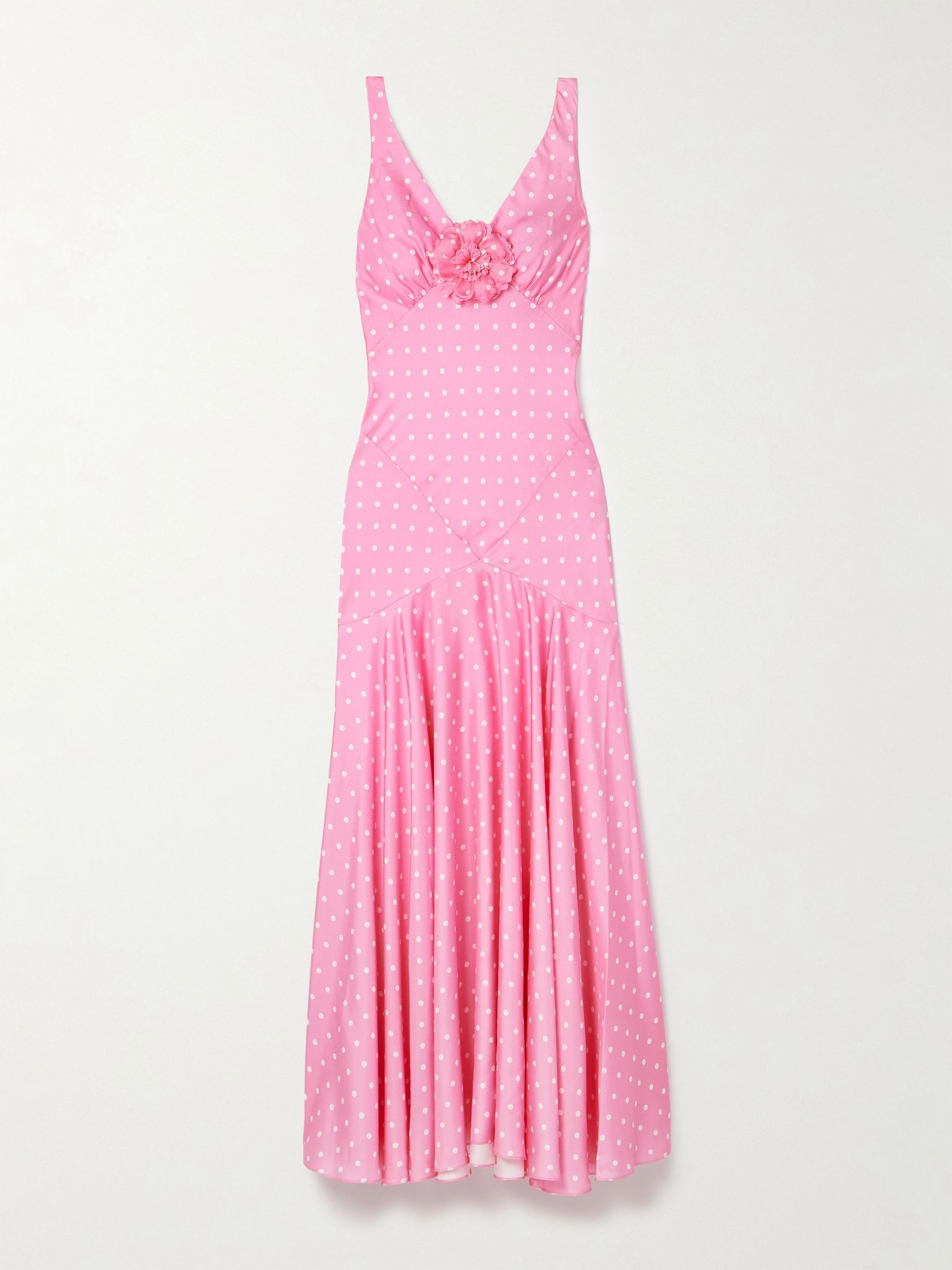Rodarte's gown is reminiscent of romantic, vintage styles. Made from silk-satin twill, it's printed with classic polka-dots and has lightly gathered seamed cups and a flowy drop skirt. Detach the signature floral pin for a more pared-back look. Size & Fit - Fits true to size, take your normal size - Intended to be fitted at the bust and waist, slightly loose at the hip - Dropped waist - Lightweight, fluid, non-stretchy fabric - Model is 180cm/ 5'11" and is wearing a US 4 Details & Care - Pink and white silk-satin twill - Concealed hook and zip fastening at side - 100% silk - Unlined - Dry clean