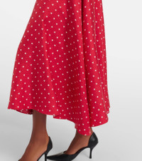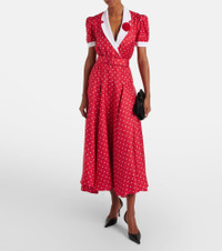 This midi dress showcases Rodarte's penchant for romantic, delicate aesthetics. The style is made from soft silk twill with a dainty heart print, a belted waist, and a contrasting collar. Product Details - Material: 100% silk - Care instructions: dry clean - Made in the USA - Color: red - Designer color name: Red - Material II: 100% silk - Detachable belt - Elasticated waistband - Includes: detachable charm - Item number: P01117066 Size & Fit - True to size - Cinched waist - Elasticated waist - Adjustable at the waist - Non-stretchy fabric - The model seen in the picture is 178cm-5'10" and wearing a size US 4