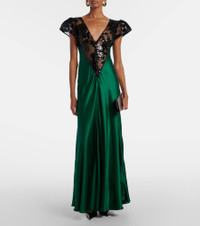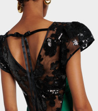 Rodarte puts romance and storytelling at the forefront of its grand and mesmerizing designs. This gown exemplifies this approach, uniting lustrous silk with elegant lace and covering it in shimmering sequins for an unforgettable effect. Product Details - Material: 100% silk - Care instructions: dry clean - Made in the USA - Designer color name: Green - Item color: green - Interlining: 70% polyester, 20% silk, 10% nylon - Closure: zipped back, self-ties - Item number: P01103980 Size & Fit - True to size - Low back - Semi-sheer - Cinched waist - Non-stretchy fabric - The model seen in the picture is 178cm-5'10" and wearing a size US 4