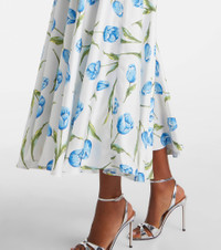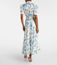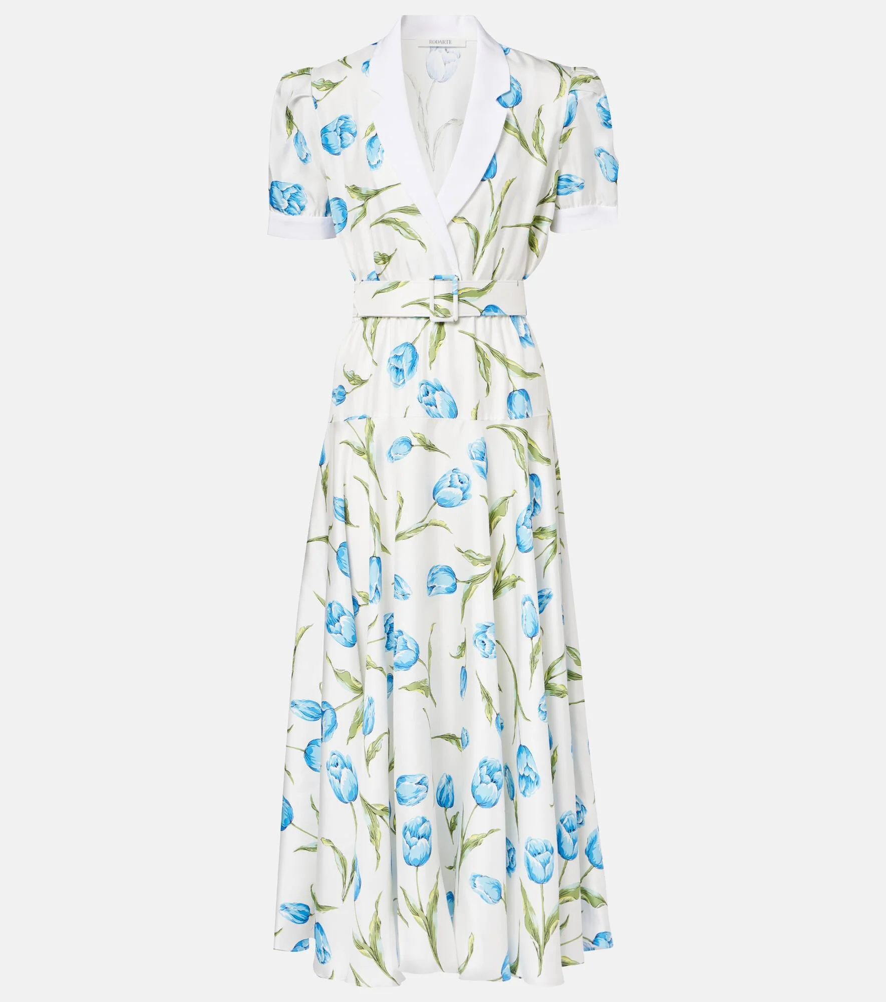 Rodarte puts romance and storytelling at the forefront of its grand and mesmerizing designs. This floral-printed midi dress is crafted from pure silk twill and shaped with lightly padded shoulders, puff sleeves, a cinching belt, and silk crepe de chine collar. Product Details - Material: 100% silk - Care instructions: dry clean - Made in the USA - Designer color name: White - Item color: white, blue, green - Shawl lapel - Cuff: buttoned - Attached belt - Elasticated waistband - Item number: P01058313 Size & Fit - True to size - Oversized shoulders - Loose fit, elasticated waist - Non-stretchy fabric - The model seen in the picture is 178cm-5'10" and wearing a size US 4