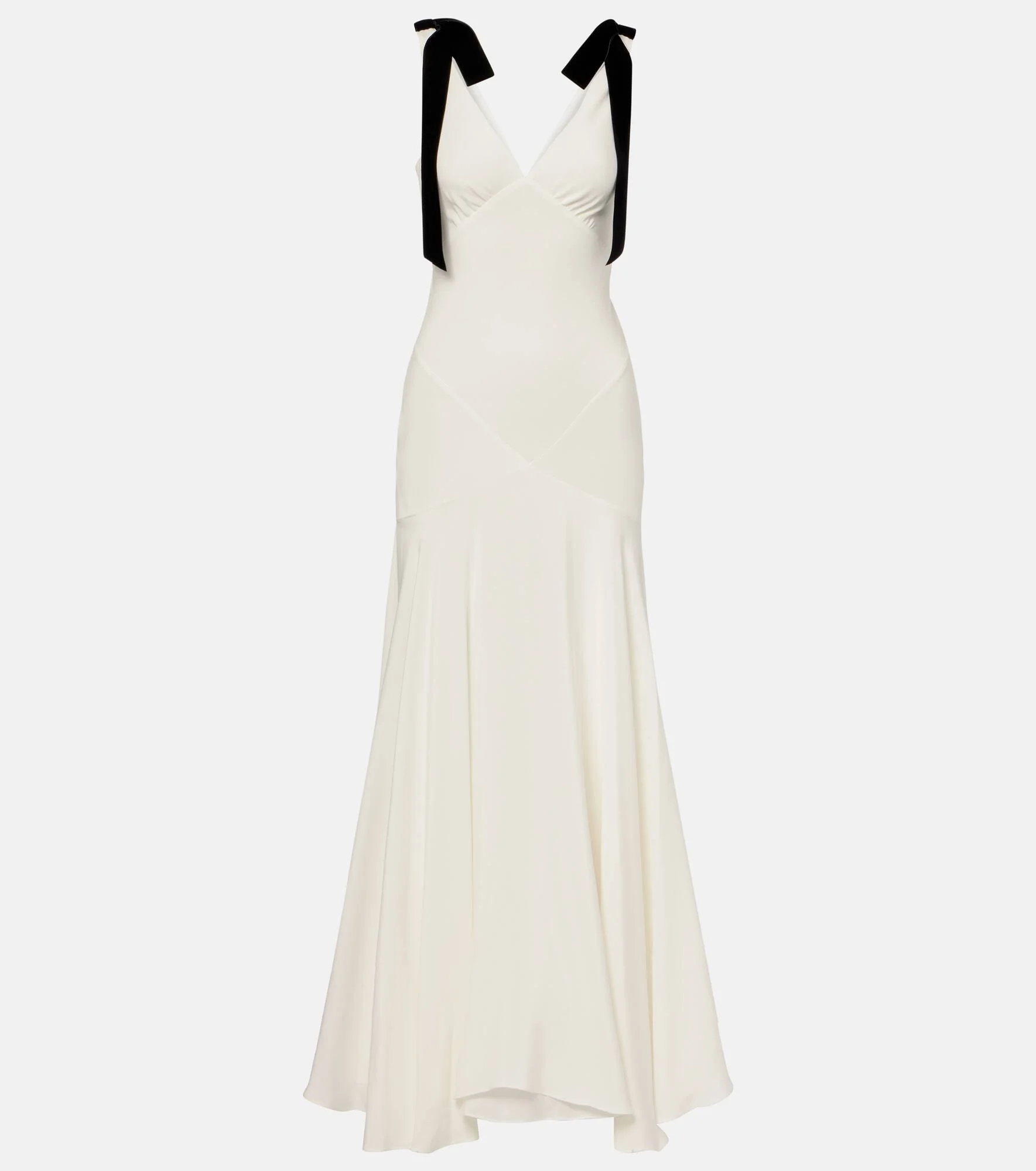 Crafted from silk crepe, this maxi dress from Rodarte showcases velvet bow-details at the shoulders. This design features a V neckline and a fitted bodice that leads down to a subtly flared skirt. Product Details - Material: 100% silk - Care instructions: specialist clean - Made in the USA - Designer color name: White - Item color: white, black - Lining: 100% silk - Trim: 62% rayon, 38% nylon - Closure: zipped side - Fully lined - Item number: P01058312 Size & Fit - True to size - Low back - Cinched waist - Non-stretchy fabric - The model seen in the picture is 178cm-5'10" and wearing a size US 4