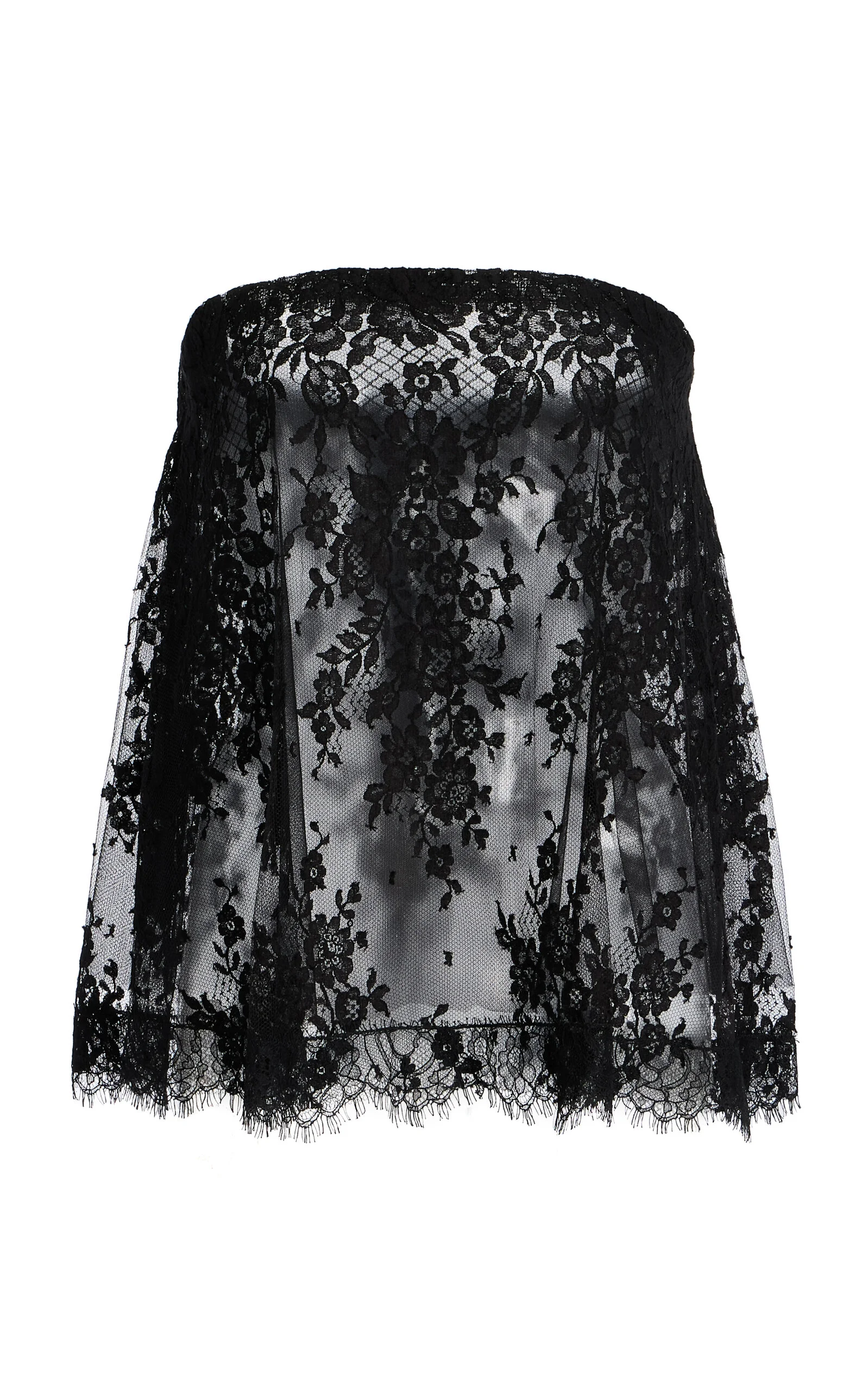 Strapless Cotton-Blend Lace Top black