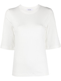 fine-ribbed organic cotton T-shirt Highlights - White - Stretch organic cotton - Fine ribbed - Round neck - Drop shoulder - Short sleeves - Straight hem Imported Composition Organic Cotton 96%, Elastane 4%