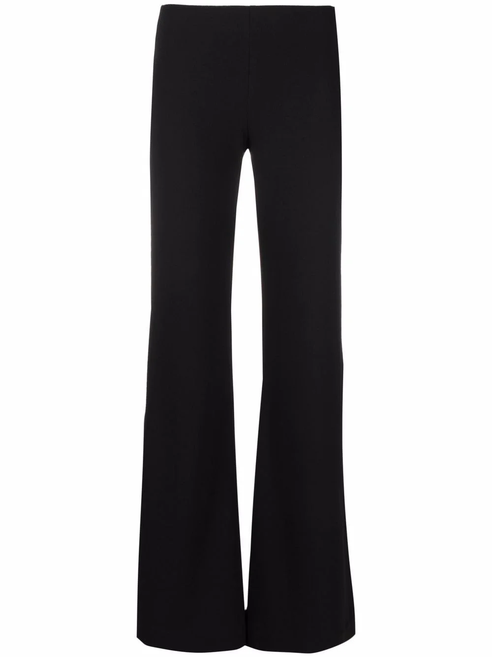 flared mid-rise trousers black mid-rise stretch-design flared hem Imported Composition Polyester 63%, Viscose 32%, Spandex/Elastane 5% SIZE & FIT Model measurements Height 5 ft 10 in(1.78 m) Bust/Chest 31.49 in(80 cm) Hips 36.22 in(92 cm) Waist 25.59 in(65 cm) Washing instructions Machine Wash