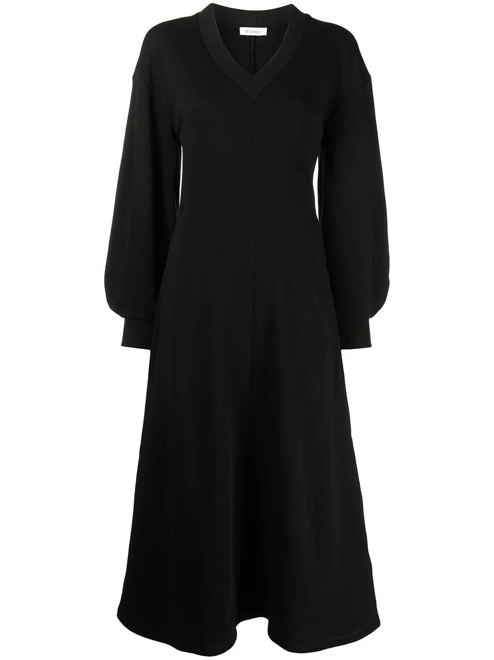 Gisele organic cotton dress Highlights - Black - Organic cotton - V-neck - Drop shoulder - Long balloon sleeves - Elasticated cuffs - Flared skirt - Mid-calf length Imported Composition Organic Cotton 100% SIZE & FIT Model measurements Height 5 ft 10 in(1.79 m) Bust/Chest 31.1 in(79 cm) Hips 33.85 in(86 cm) Waist 22.83 in(58 cm) FittingInformation This piece fits true to size. We recommend you get your regular size Designed for a close fit at the bust, waist and hips Made with a mid-weight fabric Washing instructions Machine Wash
