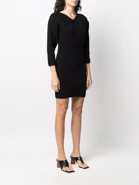 ribbed-knit V-neck dress black stretch-cotton ribbed knit V-neck three-quarter length sleeves fitted waistline thigh-length Imported Composition Cotton 97%, Spandex/Elastane 3% SIZE & FIT Model measurements Height 5 ft 10 in(1.79 m) Bust/Chest 33.07 in(84 cm) Hips 35.82 in(91 cm) Waist 24.01 in(61 cm) FittingInformation This piece fits true to size. We recommend you get your regular size Cut for a slim fit Made with a heavyweight stretch fabric