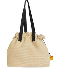 Quinn fringed straw tote bag Highlights - Beige - Woven design - Two top handles - Fringed trim - Drawstring closure - Gold-tone charm detail Imported Composition Outer: Cotton 43%, Viscose 36%, Polyester 18%, Fabric 3%