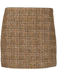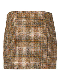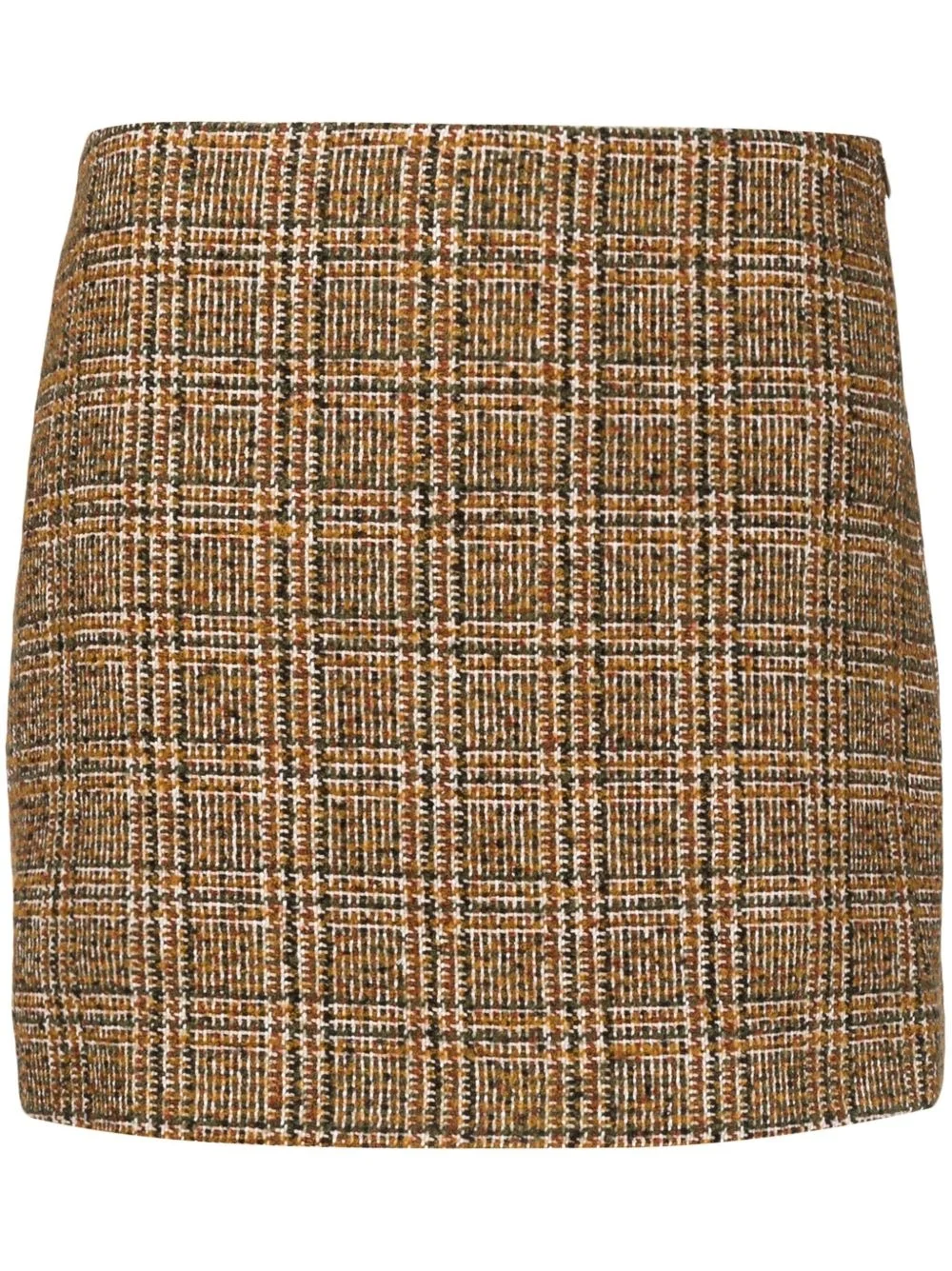 Seine checkered miniskirt Highlights - Caramel brown/olive green - Recycled cotton-virgin wool blend - Boucle design - Check pattern - Shift style - Concealed side zip fastening - Thigh-length - Full lining Imported Composition Outer: Recycled Cotton 30%, Polyester 25%, Acrylic 25%, Virgin Wool 11%, Polyamide 9% Lining: Viscose 100%