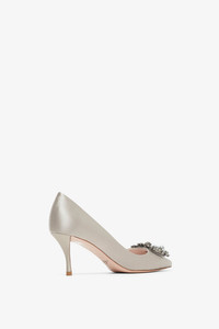 Grey satin pumps from Roger Vivier. The Flower strass satin pumps are made of silk blend satin with a crystal flower buckle on the pointed toes, set on a 65mm stiletto heel. - Leather sole - True to size - Made in Italy Product Code: RVW41443260RS0B007
