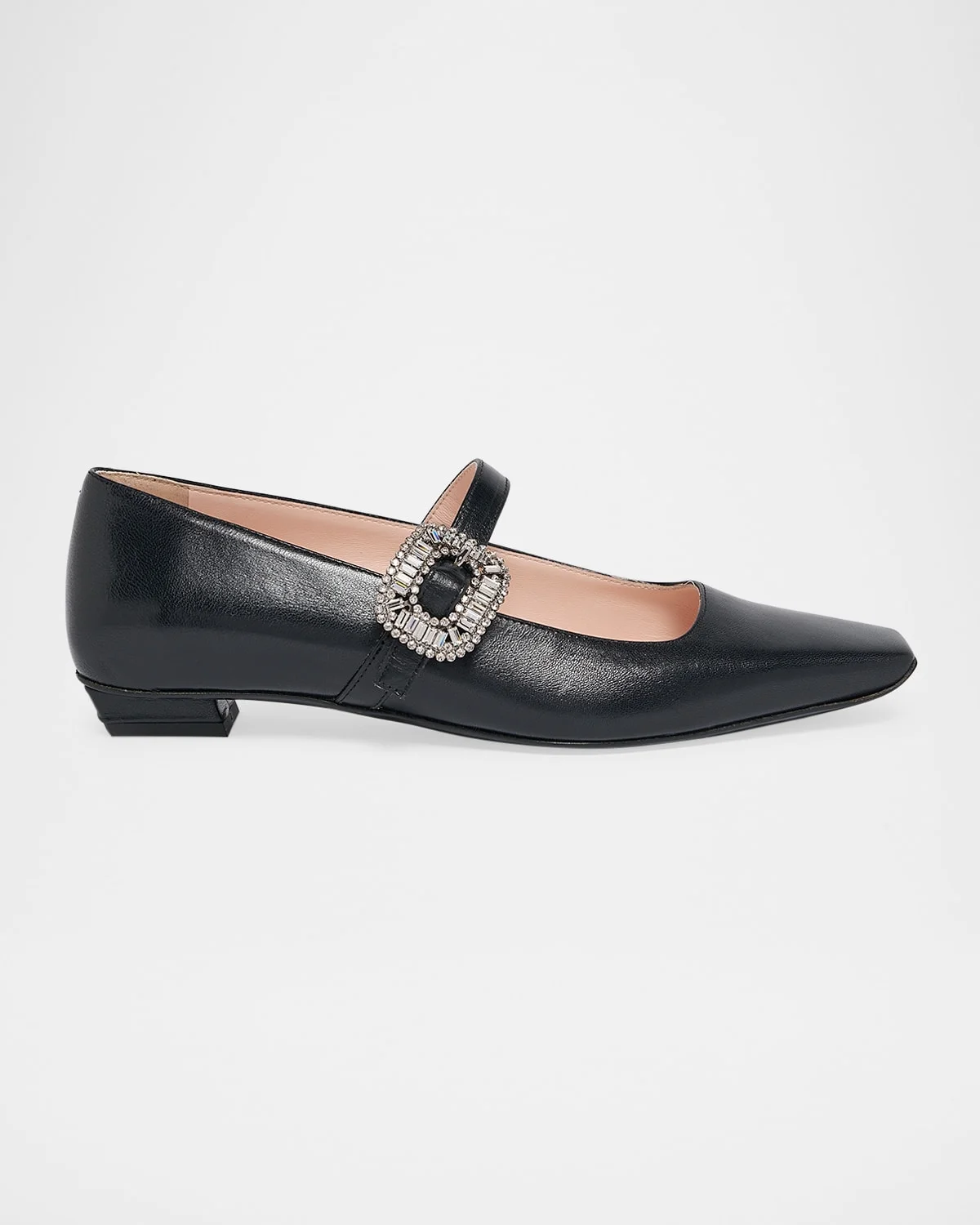- Roger Vivier "Belle" ballerina flats in calfskin leather with a crystal-embellished buckle - 1.00 in / 25 mm block heel - Closed square toe - Mary Jane buckle strap - Leather outsole - Lining: Unlined - Spot clean - Made in Italy