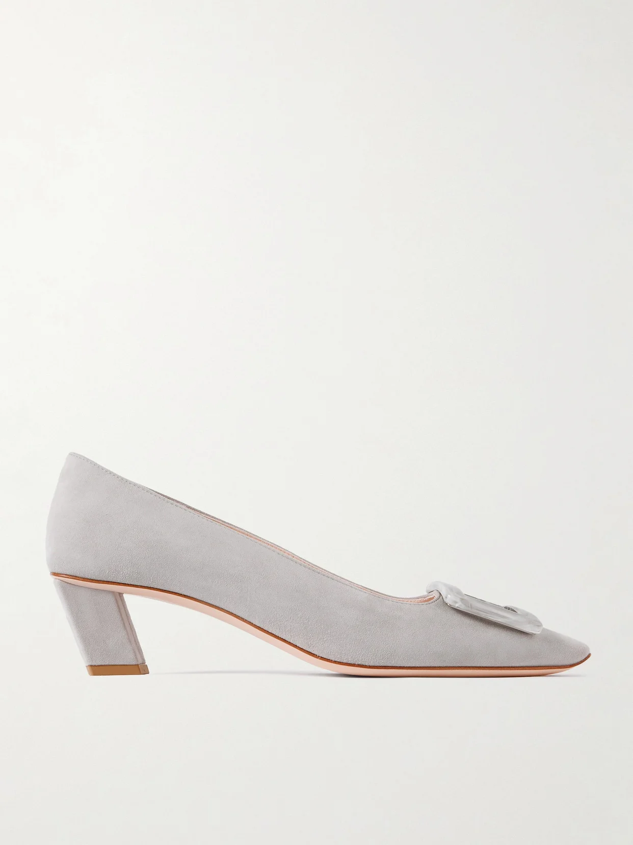 You can trace Roger Vivier's 'Belle Vivier' pumps back to 1965 when the very first pair was created - they've been thoughtfully updated every year since. Crafted in Italy from plush suede, this pair is topped with a marbled version of the brand's signature buckle and has elegant, slanted heels.
