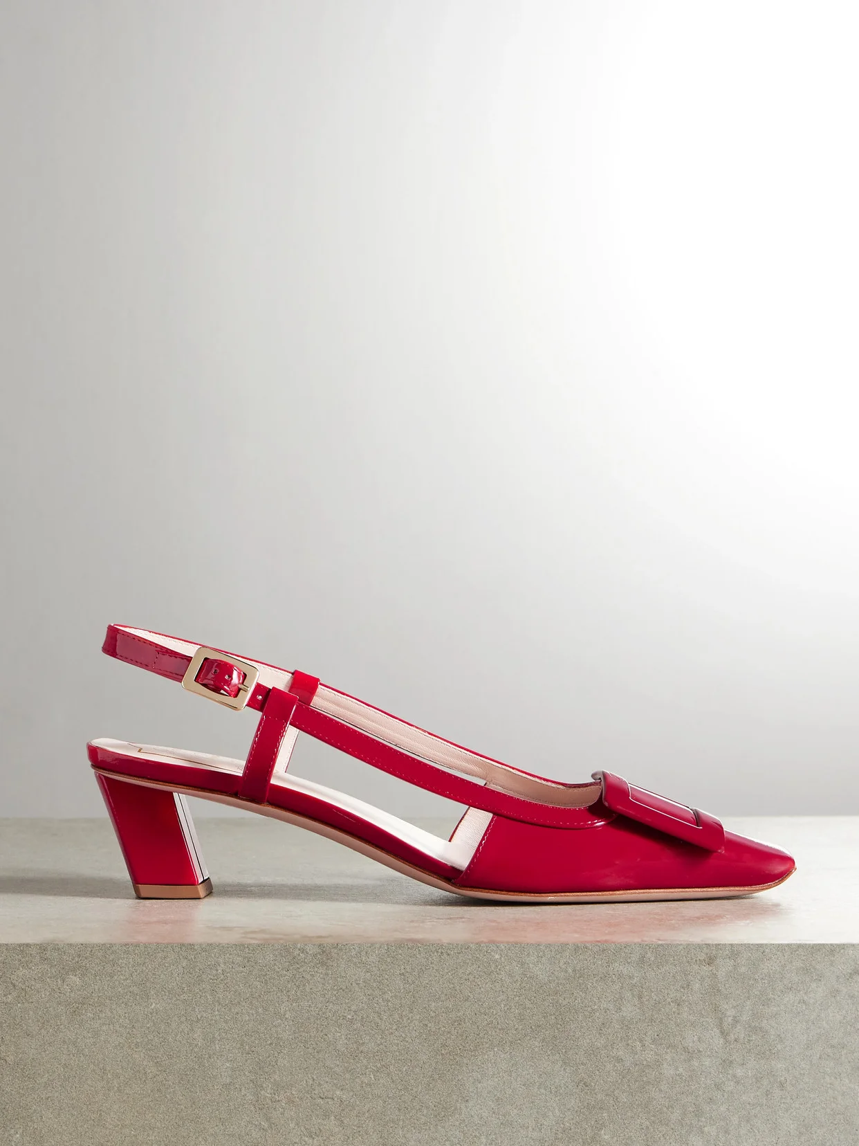 EXCLUSIVE AT NET-A-PORTER. Roger Vivier's 'Belle Vivier' pumps debuted in 1965 and remain just as timeless and elegant today. This version is made from glossy patent-leather and topped with the signature buckles at the square toes. The 45mm heels offer comfortable lift while the slingback straps can be adjusted to ensure a secure fit.