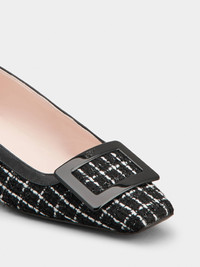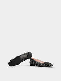 Launched in 1965, the Belle Vivier is one of the Maison's most famous designs. Becoming an icon thanks to its buckle and Skyscraper heel, its reinterpretations make it a new classic. Crafted in tweed and patent leather at our ateliers, these refined ballerinas combine comfort and elegance. The perfect ally of your days. Description & details Fabric Patent leather inserts Lacquered buckle Leather insole Leather outsole Covered Skyscraper heel Heel height 1 in Made in Italy Mod: RVW00736120TPUB999