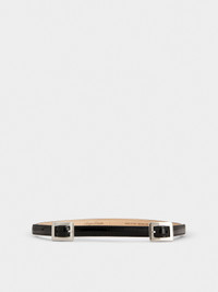 Created in 1965, the Belle Vivier buckle is an emblem of elegance and femininity. Its sophisticated and timeless allure is expressed in this belt in patent leather, with two metal buckles. Description & details Belt width: 0.6 ins Calfskin patent leather Metal buckles Made in Italy Mod: RCWC0BV0000D1PB999