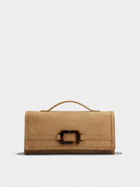 Created in 1965, the Belle Vivier buckle is an emblem of elegance and femininity. Its sophisticated and timeless allure is expressed in this clutch in suede, adorned with a resin tortoise effect buckle. Featuring a handle strap and a metal chain strap, it is perfect to accompany an elegant evening outfit or your everyday look. FEATURES - Dimensions: L 11 ins x H 5.1 ins x D 1.2 ins - Calfskin suede - Handle strap - Metal chain - Resin buckle - Magnetic button closure - Fabric lining - Internal zipped pocket - Internal pocket - Made in Italy RBWAORC0200UMGS812