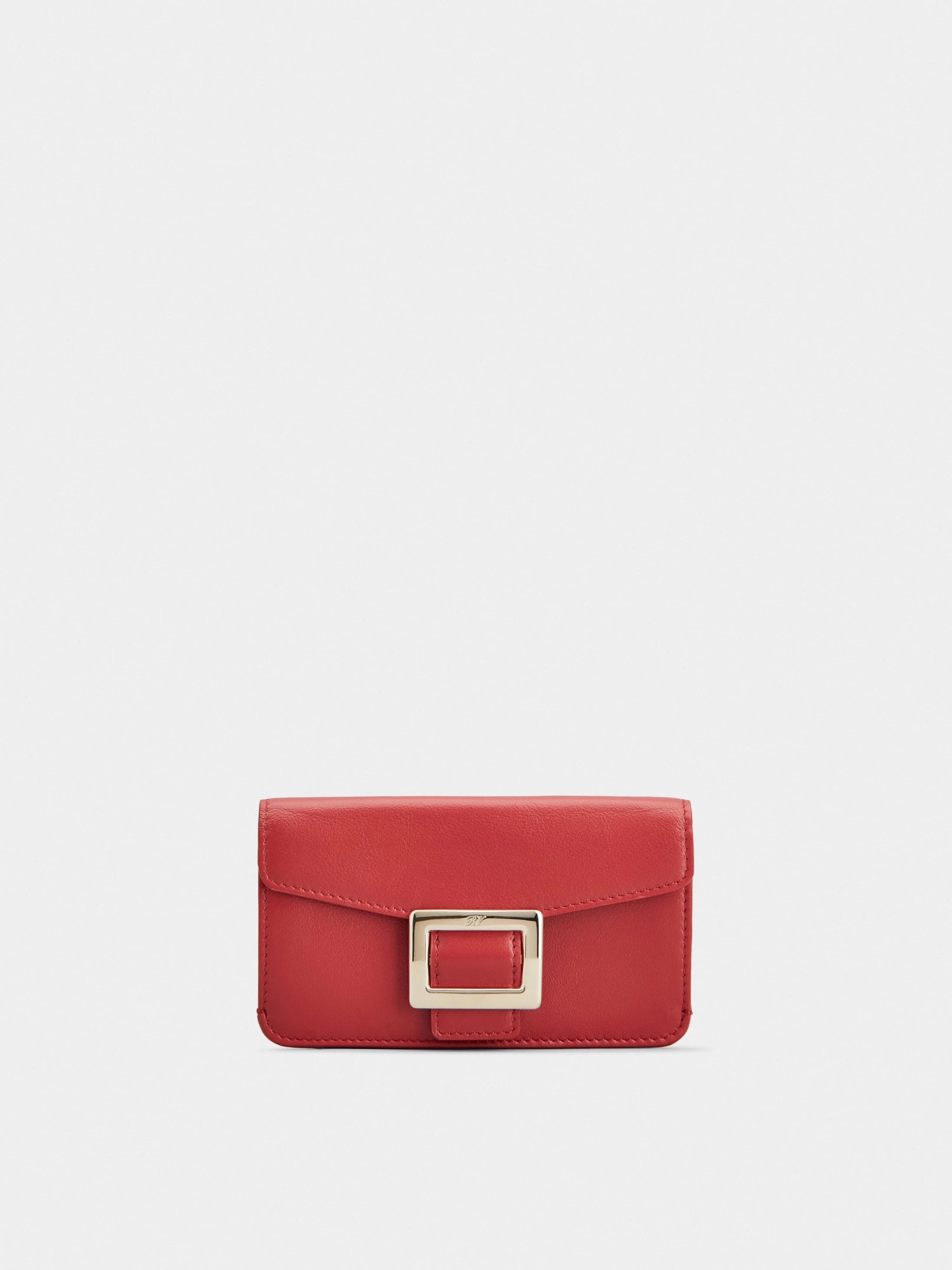 Created in 1965, the Belle Vivier buckle is an emblem of elegance and femininity. Its sophisticated and timeless allure is expressed in this card holder in leather with the iconic metal buckle. Closed with flap and snap, it features an internal zipped pocket. Description & details Dimensions: L 5.5 ins x H 3.1 ins x D 0.6 ins Calfskin leather Metal buckle Snap closure 1 internal zipped pocket Made in Italy Mod: RAWAWSF3301XMAR021