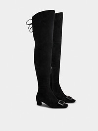 Launched in 1965, the Belle Vivier is one of the Maison's most famous designs. Becoming an icon thanks to its buckle and Skyscraper heel, its reinterpretations make it a new classic. Crafted in soft suede, these cuissards are the perfect ally of your days. Description & details Suede (goatskin leather) Lacquered buckle Zip on the inside Laces on the back of the bootleg Leather insole Leather outer sole Covered Skyscraper heel Heel height 1.8 ins Made in Italy Mod: RVW00639990HR0B999