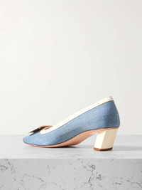 EDITORS'NOTES Roger Vivier's 'Belle Vivier' pumps were created in 1965, and each iteration since looks just as fresh as the first. Made in Italy from denim and glossy patent-leather, this version is topped with the brand's signature buckle and set on slanted heels. Wear yours with everything from jeans to floaty dresses. SIZE & FIT - Fits large to size, take a half size smaller than normal - Italian sizing DETAILS & CARE - Heel measures approximately 45mm/ 2 inches - Blue denim and white patent leather (Calf) - Slip on Large to size. See Size & Fit notes.