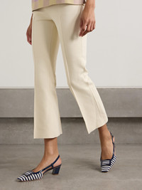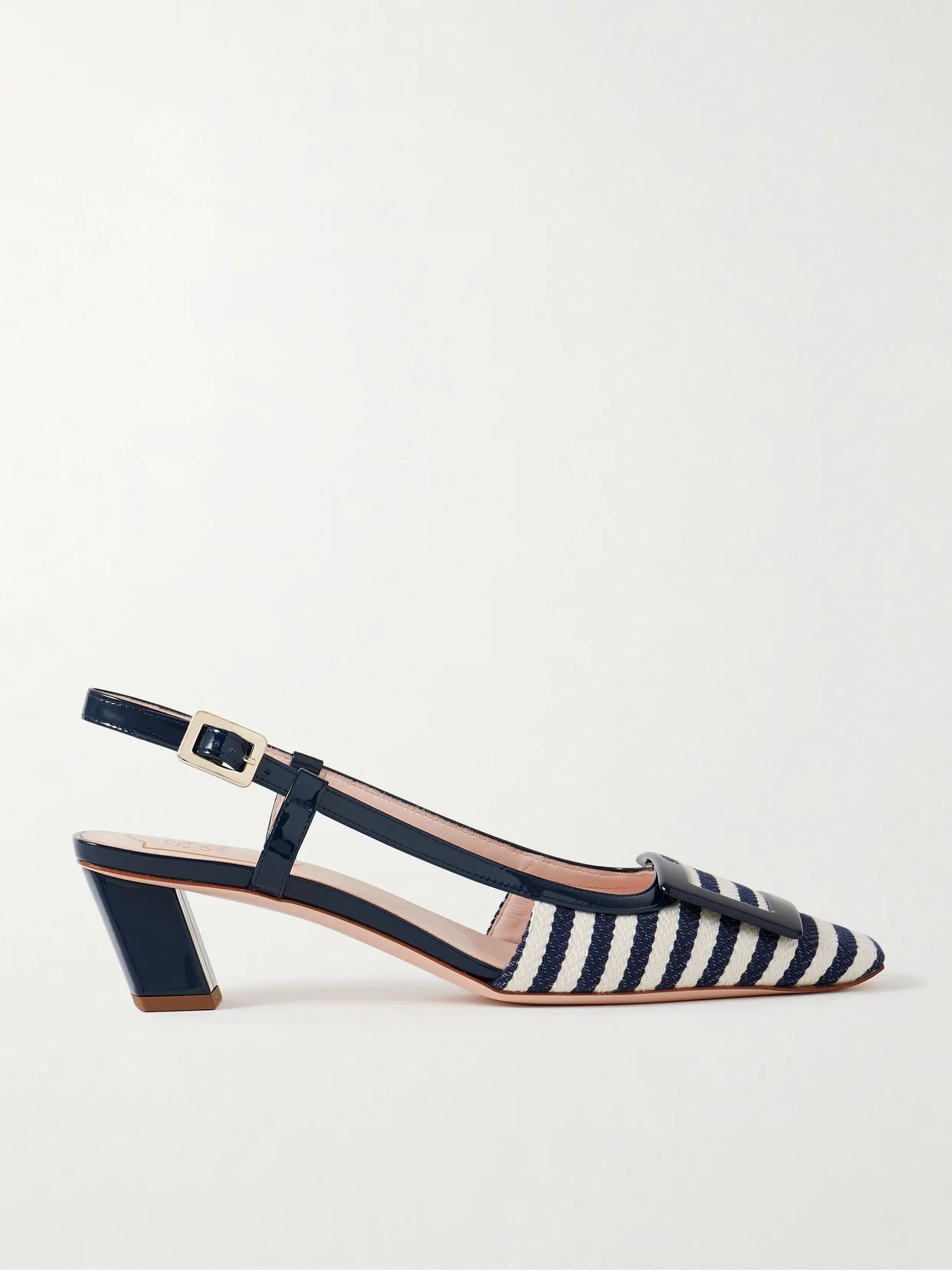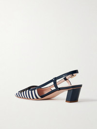 Roger Vivier's 'Belle Vivier' pumps debuted in 1965 and remain just as timeless and elegant today. This version is woven with stripes, trimmed with glossy patent-leather and topped with the signature buckles at the square toes. The 45mm heels offer comfortable lift while the slingback straps can be adjusted to ensure a secure fit.