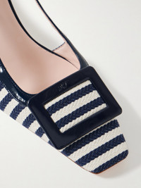 Belle Vivier 45 Patent Leather-trimmed Striped Woven Slingback Pumps