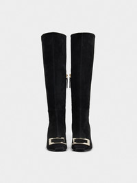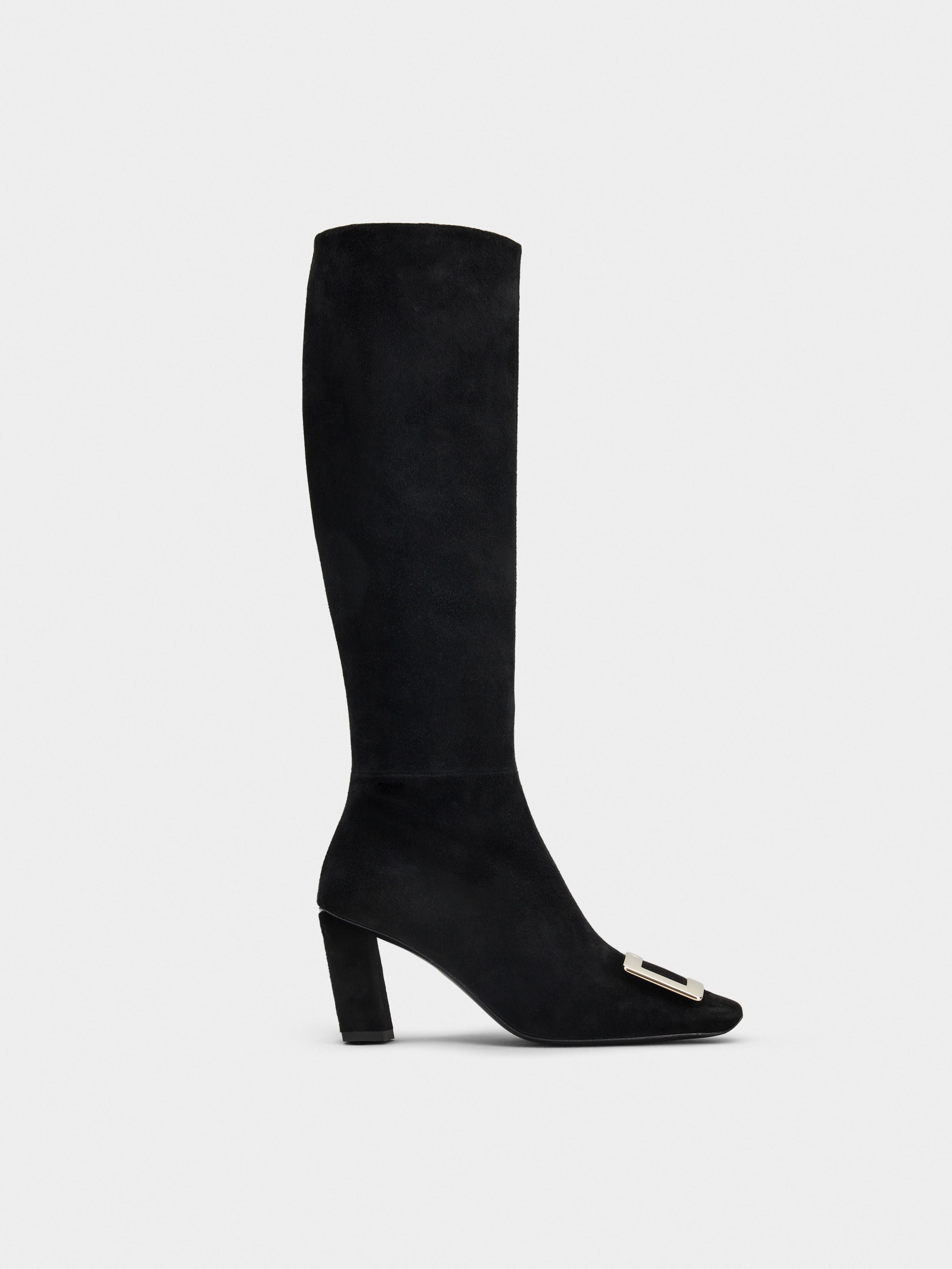 The Belle Vivier is one of the Maison's most iconic styles. First launched in 1965, it continues to inspire timeless creations. Handcrafted in soft suede, the Belle Vivier Boots come with the iconic metal buckle and the covered Skyscraper heel. A feminine and versatile style, with a truly timeless elegance. Description & details Made in Italy Suede upper Squared toe Branded metal buckle Elastic inserts and zip on the inside Heel 3 ins Leather outsole Maintenance and care cards included Branded dustbag Mod: RVW71336000HR0B999