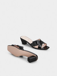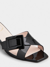 Launched in 1965, the Belle Vivier is one of the Maison's most famous designs. Becoming an icon thanks to its buckle and Skyscraper heel, its reinterpretations make it a new classic. Crafted in patent leather, these mules are the perfect ally of your days. FEATURES - Patent calfskin leather - Lacquered buckle - Leather insole - Leather outer sole - Covered Skyscraper heel - Heel height 1.8 ins - Made in Italy RVW82045010D1PB999
