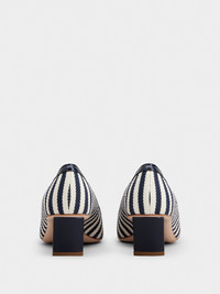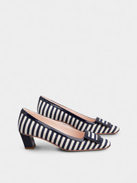 Launched in 1965, the Belle Vivier is one of the Maison's most famous designs. Becoming an icon thanks to its buckle and Skyscraper heel, its reinterpretations make it a new classic. Crafted in striped canvas and patent leather, these refined pumps are the perfect ally of your days. Description & details Cotton blend fabric Patent calfskin leather inserts Lacquered buckle Leather insole Leather outer sole Covered Skyscraper heel Heel height 1.8 ins Made in Italy Mod: RVW00636120UEC2889