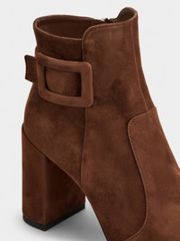 Evoking the spirit of the Sixties with their iconic buckle and covered heel, the Polly booties in suede combine refined comfort with sophisticated allure. Designed for the urban woman, they embody a timeless style and effortless elegance at every step. FEATURES - Goatskin suede - Covered side buckle - Zip on the inside - Leather lining and insole - Leather outer sole - Covered heel - Heel height 3.3 ins - Made in Italy RVW79440570HR0S604