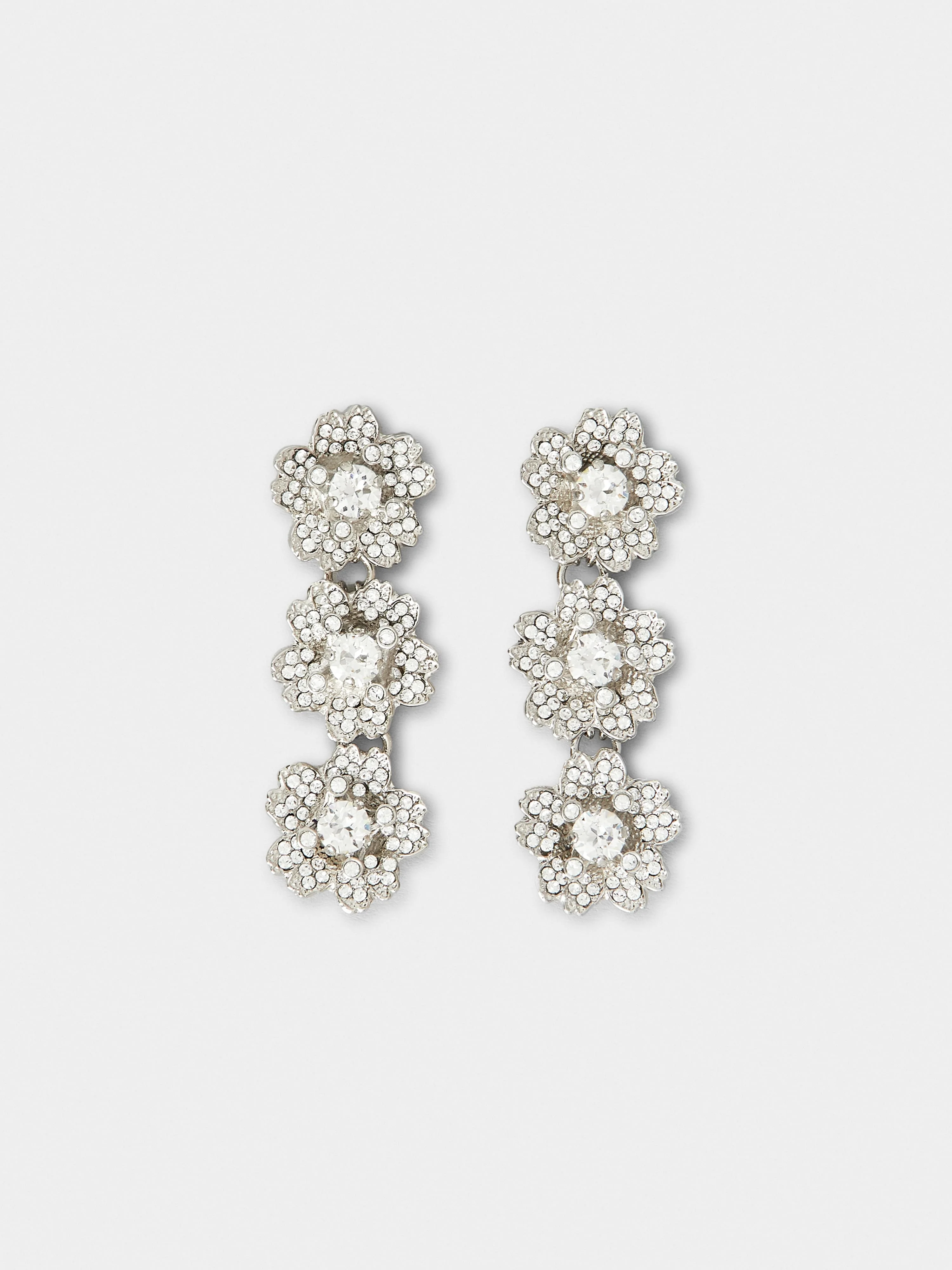 The crystal Bouquet Strass buckle takes inspiration from elements of antique jewelry. Its enchanting flowers adorn these refined earrings. Crafted in hypoallergenic metal, they brighten your outfit with a precious and elegant touch. Description & details Made in Italy Item crafted in hypoallergenic metal and crystals Pin closure Dimensions: 0.6 x 2 x 0.2 ins Maintenance and care cards included Mod: REWOR490100AGKB200