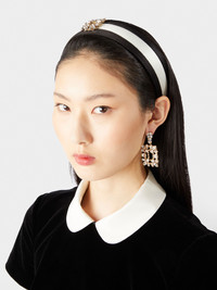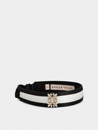 Inspired by the beautiful gardens of the Château de Versailles, the Broche Vivier collection showcases the same exquisite symmetry with its detailed crystal buckle. The Broche Vivier Buckle Hair Bandeau comes with this distinct Maison signature. Crafted in satin with an elegant contrasting band, it adds an iconic touch to your hairstyle. Description & details Made in Italy Item crafted in satin Crystal buckle Roger Vivier logo on the inside Elastic insert Maintenance and care cards included Mod: REWAC350100RS0194H