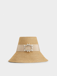 The Broche Vivier Hat is finely crafted in raffia, with a ribbon that emphasizes the iconic crystal buckle. Description & details Raffia Grosgrain ribbon Crystal buckle Made in Italy Mod: RQWH0070100AU49999