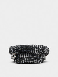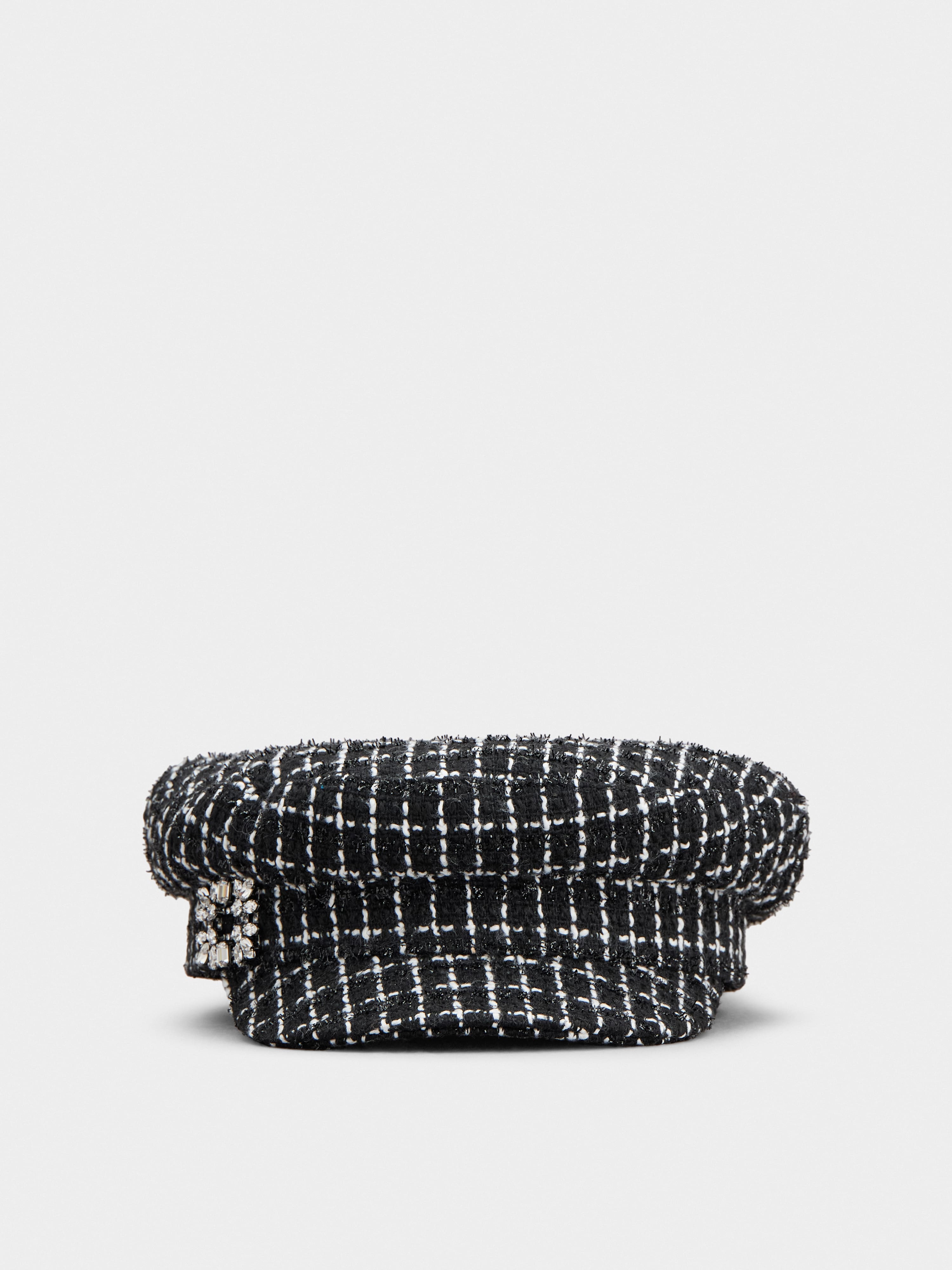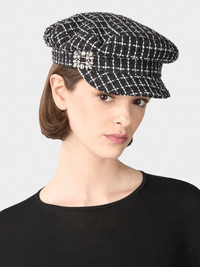 Inspired by the gardens of the Château de Versailles, the Broche Vivier collection showcases the same exquisite symmetry with its crystal buckle. Crafted in tweed, this sailor cap is adorned with this emblem: a bold touch to your look. Description & details Tweed fabric Check pattern Crystal buckle Made in Italy Mod: RQWH01401005P9B999