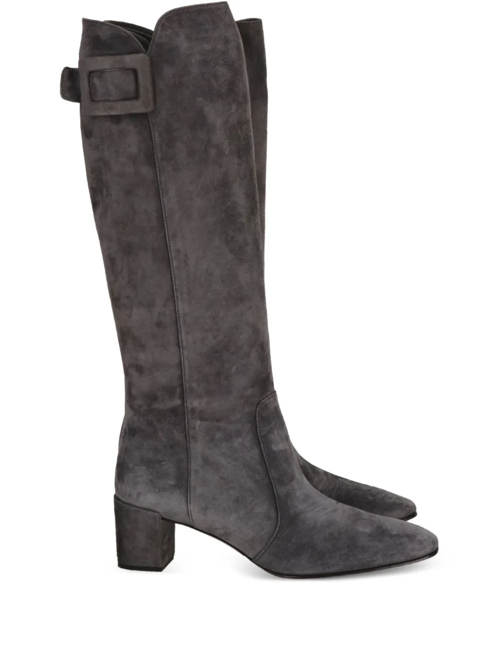 buckle-detail knee-high boots Highlights - Grey - Suede upper - Block heel - Knee-high shaft - Buckle fastening Made in France Composition Outer: Suede 100% Lining: Fabric 100% Sole: Wood 100%
