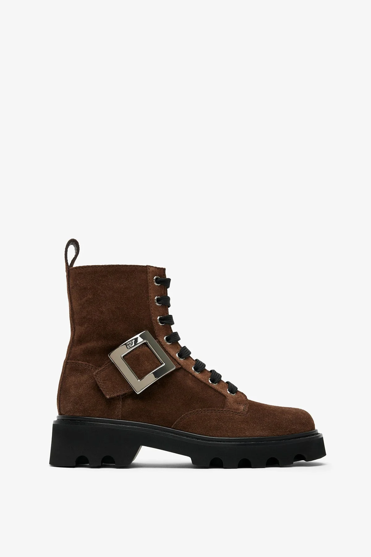 Brown suede lace up boots from Roger Vivier. The Viv Rangers lace up boots are made of brown suede, featuring a side zip closure, front laces, round toe and leather lining, set on a rubber sole. It is complete with the brand's iconic metal buckle. - Rubber sole - True to size - Made in Italy Product Code: RVW78442760HG0S611
