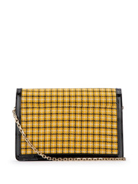 check print clutch bag Highlights - Yellow/black - Canvas/leather - Patent finish - Logo-buckle detail - Chain-link shoulder strap - Foldover top with magnetic fastening - Main compartment Made in Italy Composition Outer: Patent Leather 100%, Fabric 100%