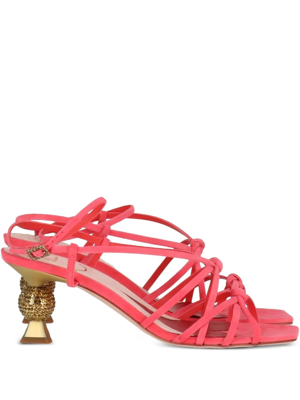 crystal-embellished knotted sandals Highlights - Coral pink - Knotted straps - Crystal-embellished ball heel - Slender heel - Ankle strap - Buckle fastening Made in France Composition Sole: Calf Leather 100% Lining: Calf Leather 100% Outer: Calf Leather 100%
