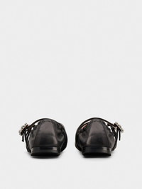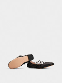 Crafted in soft nappa leather with elastic piping, these Mary Janes come with two straps embellished with crystal buckle. Perfect for running between a thousand appointments without compromising elegant and sophisticated femininity. Description & details Nappa leather Crystal buckle straps Elastic piping Leather insole Leather outer sole Made in Italy Mod: RVW7433907091TB999