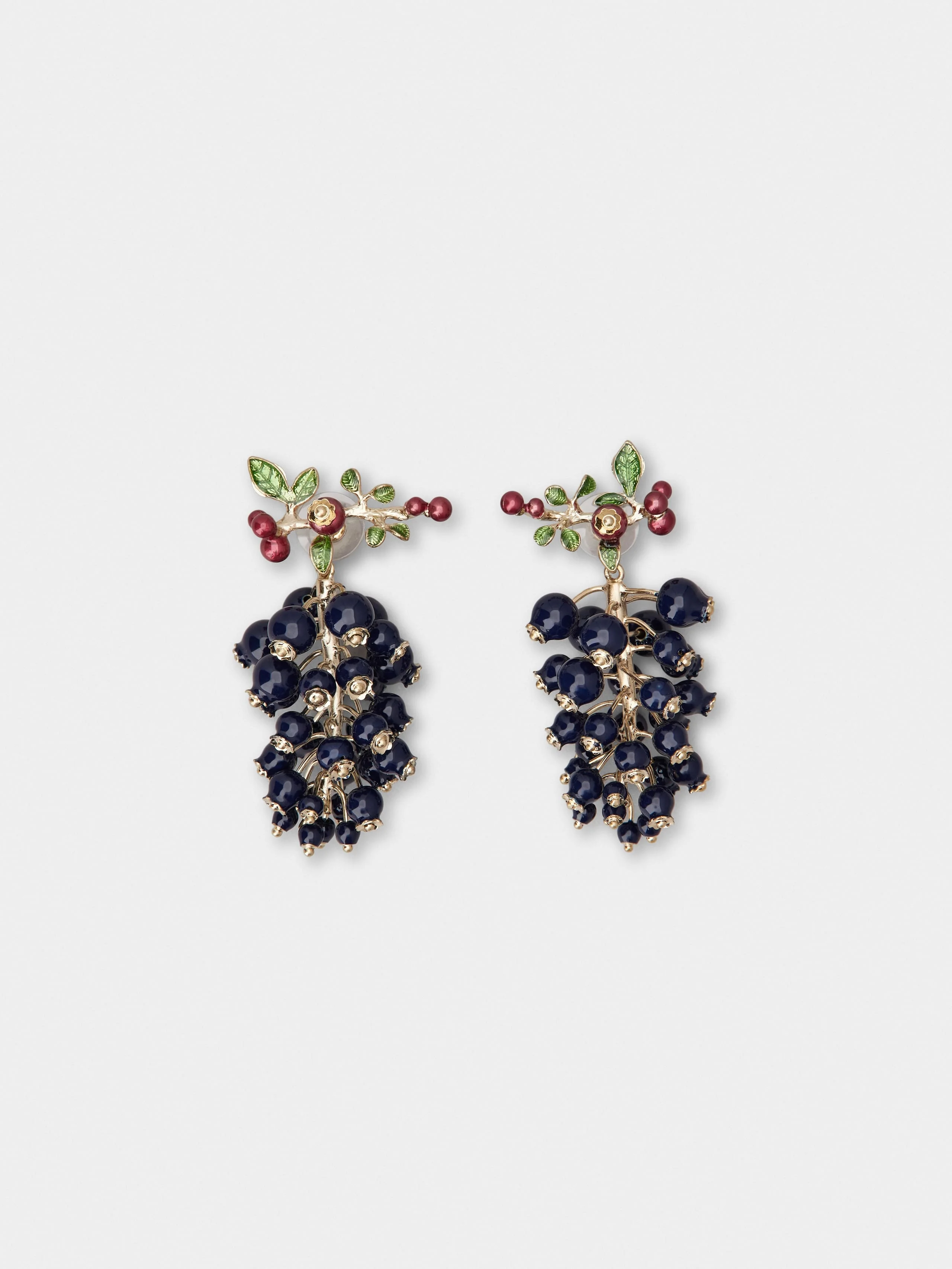 Roger Vivier interprets the garden theme with a joyful and sophisticated style. Faithful reproduction of blueberry branches, these enamelled earrings are the result of refined craftsmanship. Description & details Dimensions: 1.2 x 2.6 x 1.2 ins Enamelled hypoallergenic metal Press stud closure with pin Detail with engraved RV logo Made in Italy Mod: REWOR730100AGKG005