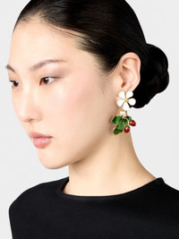 Earrings with delicate flowers and enamelled fruits. A refined touch to your outfits. FEATURES - Dimensions: 1.5 x 2.6 x 0.6 ins - Hypoallergenic metal and crystals - RV logo on the back - Pin closures - Made in Italy REWOR720100AGKG005