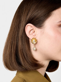 Earrings with floral element and crystal boules. Inspired by the floral patterns of the 1960s, they complement the contemporary Vivier woman's look. FEATURES - Length: 1.4 ins, width: 0.8 ins approx - Hypoallergenic metal and crystals - Pin closure - RV logo engraved on the back - Made in Italy REWOR650100AGKG203