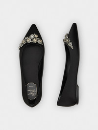 The Efflorescence ballerinas are embellished with iconic crystal flowers. Handcrafted in satin, this is a timeless style, that combine comfort and femininity. Description & details Silk blend satin Crystal flowers Silk blend satin insole Leather outer sole Made in Italy Mod: RVW50241650RS0B999