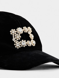 The Efflorescence buckle is characterized by shiny flowers made of crystals. This jewel with Rococo reminiscences adorns this elegant baseball cap. An accessory with a precious touch to complement the urban look of the Vivier woman. FEATURES - Velvet - Crystal buckle - Adjustable with strap on the back - Cotton lining - Roger Vivier logo on the inside - Made in Italy RQWH0200100AQPB999