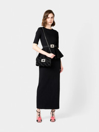 The Efflorescence buckle is characterized by shiny flowers made of crystals. This jewel with Rococo reminiscences adorns this elegant clutch in satin, with soft rose-shaped ruffles. Featuring a metal chain strap, it is designed to complement an evening outfit. FEATURES - Dimensions: L 9.4 ins x H 4.7 ins x D 1.4 ins - Silk blend satin - Metal chain - Crystal buckle - Magnetic button closure - Satin lining - Internal pocket - Made in Italy RBWAMFDN200RS0B999