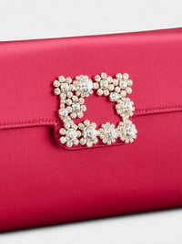 Clutch in satin with iconic Maison's buckle composed of crystal flowers. Refined and precious, with metal chain strap, it is perfect for an important occasion. FEATURES - Dimensions: 9.4 x 5.1 x 1.4 ins - Silk blend satin - Metal chain strap 41.3 ins approx - Crystal buckle RBWAMFD0200RS0M809