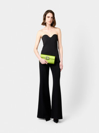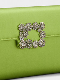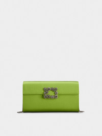 The Efflorescence buckle is characterized by shiny flowers made of crystals. This jewel with Rococo reminiscences adorns this clutch in silk blend satin. Featuring a metal chain strap, this practical bag is designed to complement an evening outfit. Description & details Dimensions: L 9.4 ins x H 5.1 ins x D 1.4 ins Silk blend satin Metal chain Crystal buckle Magnetic button closure 2 compartment interior Internal pocket Made in Italy Mod: RBWAMFD0207RS0V403