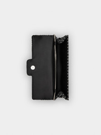 The Efflorescence buckle is characterized by shiny flowers made of crystals and beads. This jewel with Rococo reminiscences adorns this clutch in tweed. Featuring a metal chain strap, this practical bag is designed to complement an evening outfit. Description & details Dimensions: L 9.4 ins x H 5.1 ins x D 1.4 ins Tweed fabric Check pattern Metal chain Crystal and bead buckle Magnetic button closure Silk blend fabric lining Internal pocket Made in Italy Mod: RBWAMFD0206TPDB999