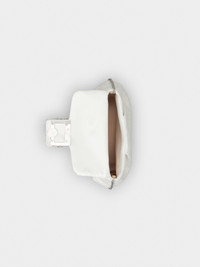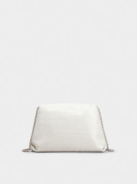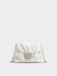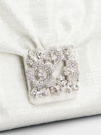 With Rococo reminiscences, the iconic Efflorescence buckle adorns this elegant clutch. Crafted in delicately draped sequin fabric, it comes with a fixed metal chain strap and a removable handle in leather. Description & details Dimensions: L 9.1 x H 5.9 x D 2.8 ins Sequin fabric Removable handle in leather Metal chain strap Crystal buckle Magnetic button closure Fabric lining Made in Italy Mod: RBWANVC0117UW41N95