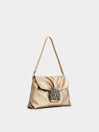 With Rococo reminiscences, the iconic Efflorescence buckle adorns this elegant clutch. Crafted in delicately draped leather, it comes with a fixed metal chain strap and a removable handle. FEATURES - Dimensions: L 9.1 ins x H 5.9 ins x D 2.8 ins - Calfskin leather - Metallic finishing - Removable handle - Metal chain strap - Crystal buckle - Magnetic button closure - Satin lining - Made in Italy RBWANVC0117L4QM013