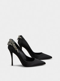 The Efflorescence pumps are embellished with iconic crystal flowers. Handcrafted in satin, this timeless creation will accompany you on your soirees. FEATURES - Silk blend satin - Crystal flowers - Silk blend satin insole - Leather outer sole - Covered Sin heel - Heel height 3.9 ins - Made in Italy RVW41941640RS0B999